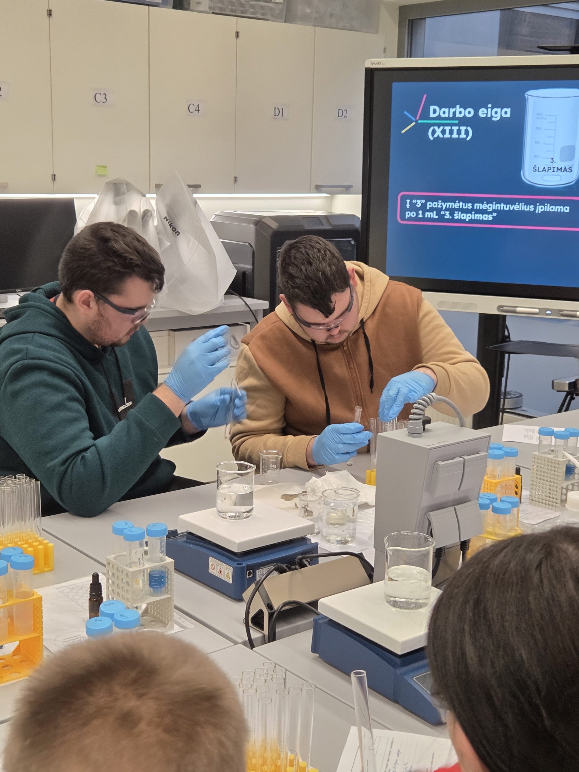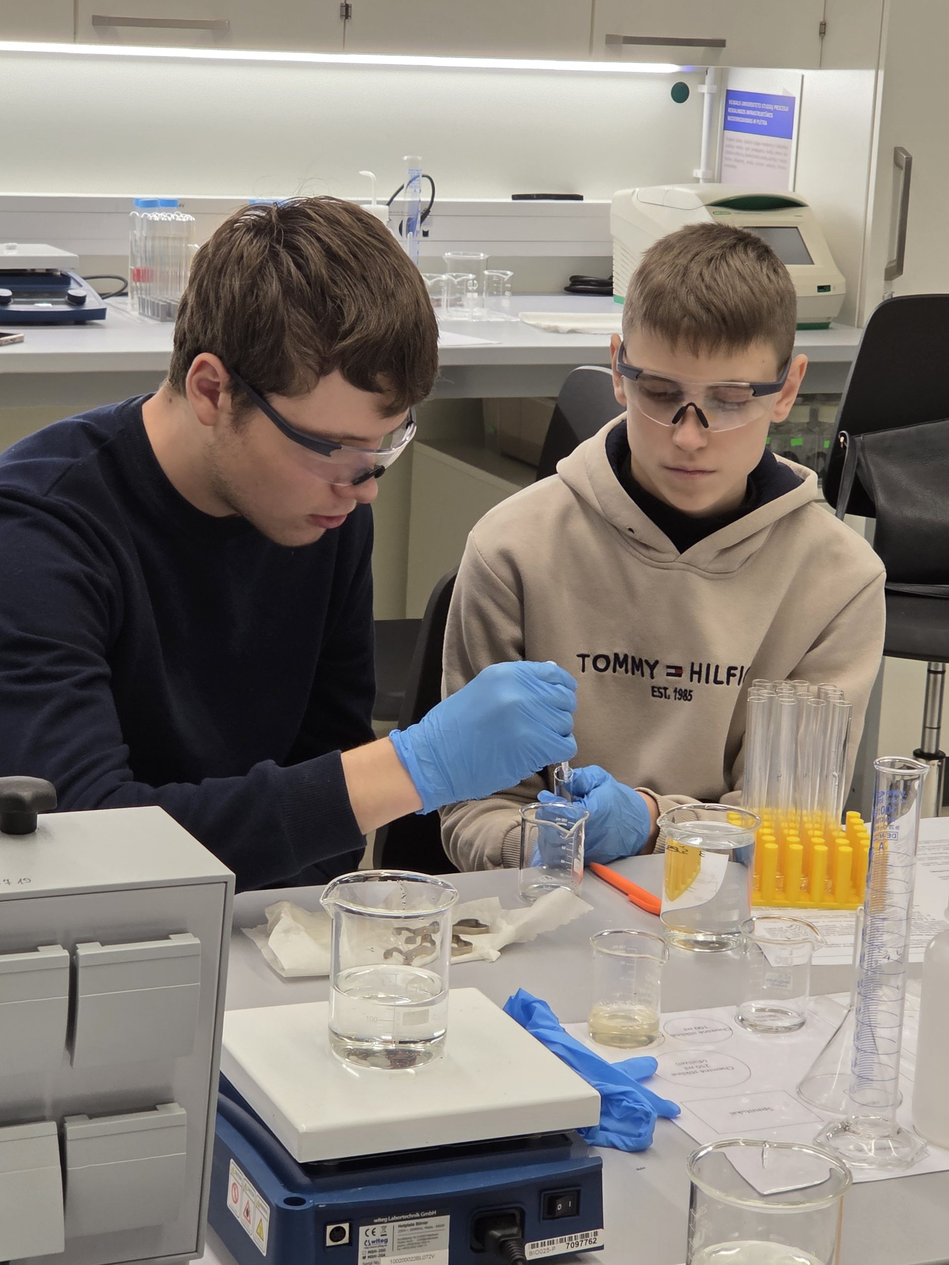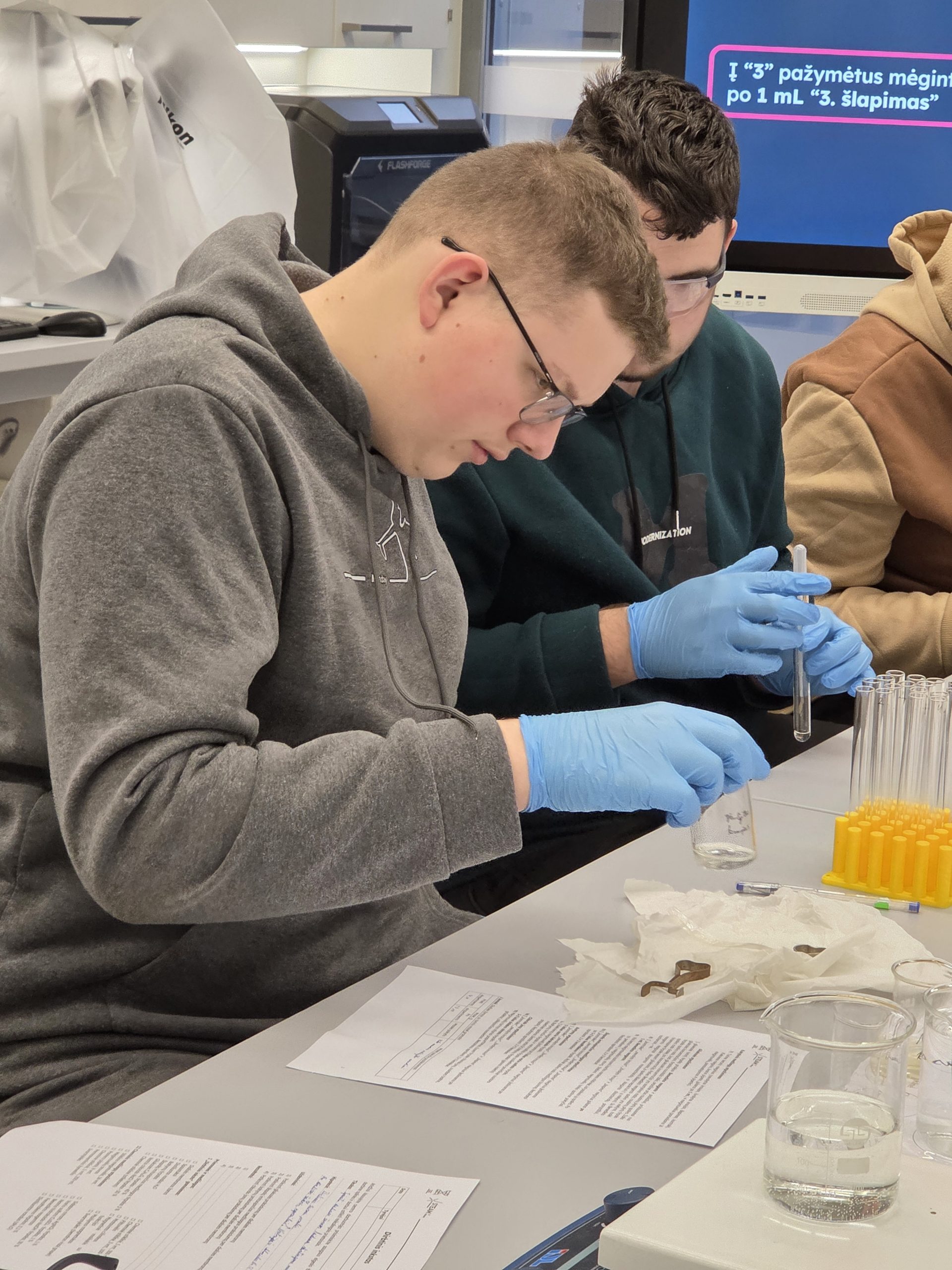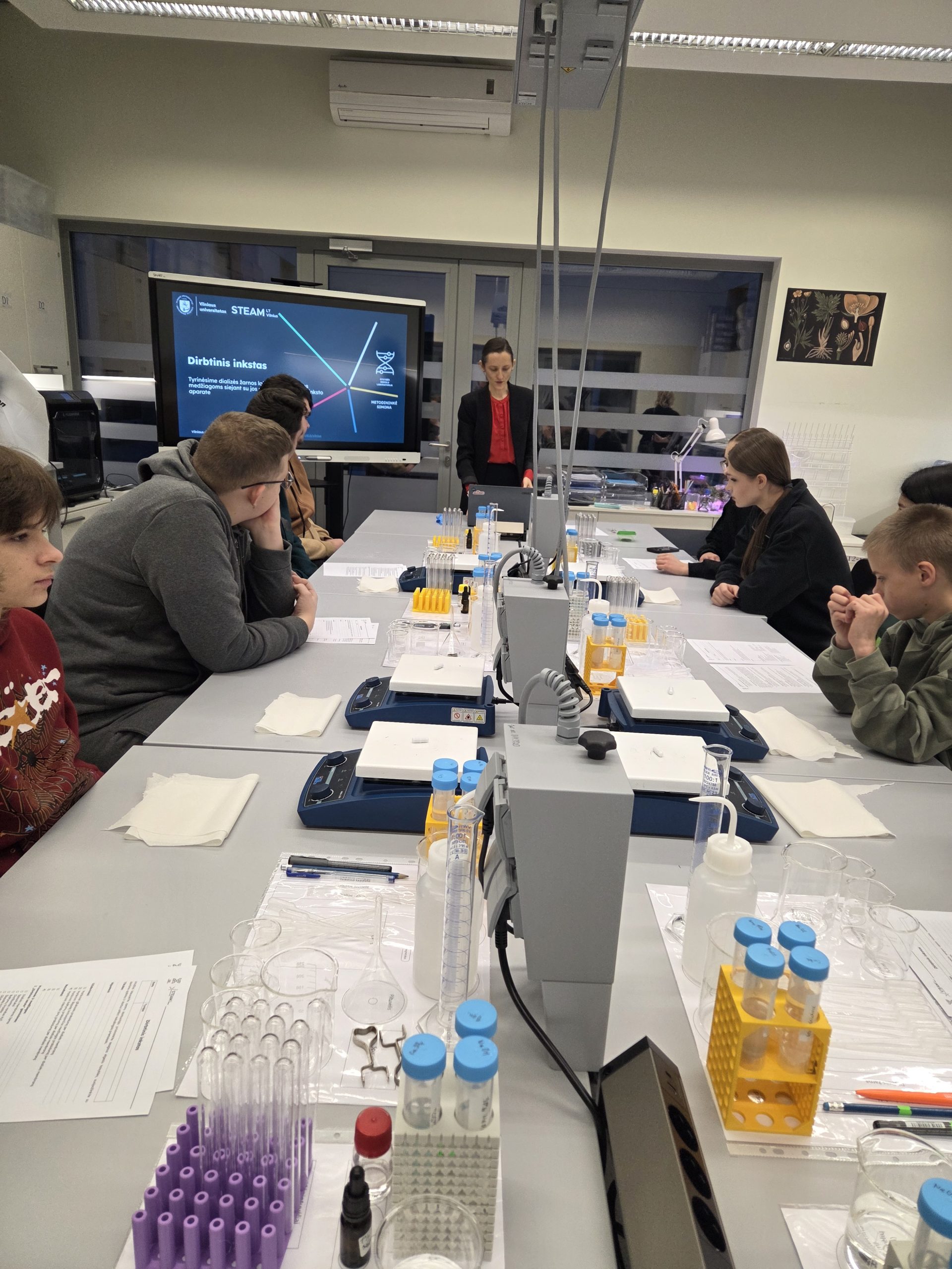 I–II G klasių mokiniai dalyvavo patyriminėse edukacinėse veiklose Vilniaus STEAM centre, kur turėjo galimybę teorines gamtos mokslų žinias pritaikyti praktikoje ir giliau suprasti šiuolaikinių technologijų reikšmę medicinoje bei biologiniuose procesuose.