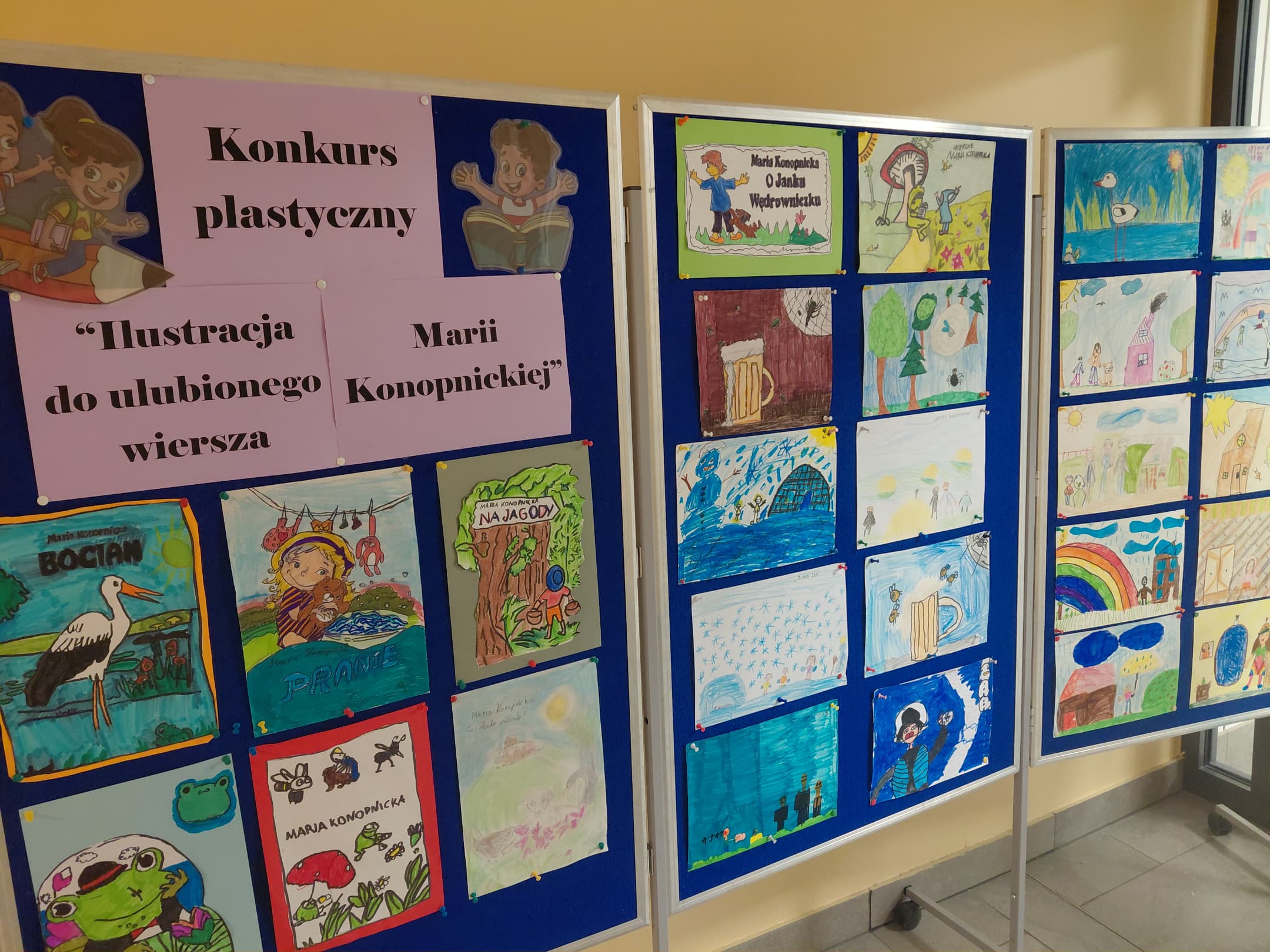 W ramach projektu w gimnazjum mieliśmy wiele przedsięwzięć. Rozpoczęliśmy go konkursem prac plastycznych „Ilustracje do wierszy Marii Konopnickiej”. Bohaterowie wierszy ożyły pod wpływem ołówka, pędzla i farb. Kontynuacją był konkurs czytelniczy „Młodociany mistrz czytania poezji Marii Konopnickiej”. Za pośrednictwem konkursu wyłoniliśmy tych, którzy najładniej potrafili przeczytać wierszowane słowo znanej polskiej poetki. Na konkurs byli zaproszeni goście z Gimnazjum im. Tadeusza Konwickiego w Bujwidzach. Każdy z uczestników za udział otrzymał list gratulacyjny i słodką niespodziankę, a zwycięzcy honorowe dyplomy i prezenty ufundowane przez sponsorów projektu.